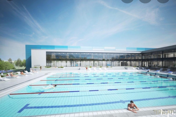 A jelenleg is működő ötpályás, 25 méteres medence helyett egy új tízpályás, 50 méteres fedett uszoda és eg ...